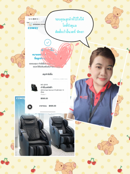 ขอบคุณลูกค้าที่พัทยา ไว้ใจให้โคดี้บัวดูแล สั่งซื้อเก้าอี้นวดไฟฟ้า กับโปรโมชั่น ลด50% นาน5เดือน ชำระเพียง595.- ติดตั้งเครื่องที่พัทยาได้เลย🎉💥